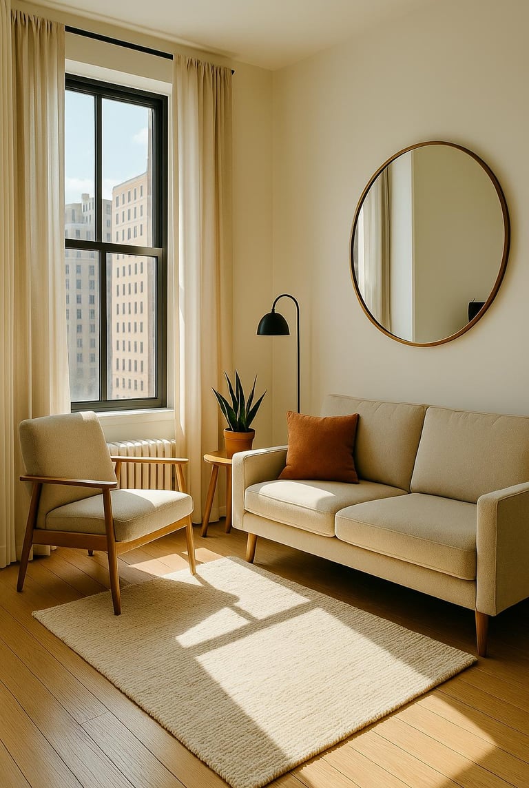 Mirrors are your best friend when space is limited. They bounce light, create depth, and instantly make your apartment feel more open.